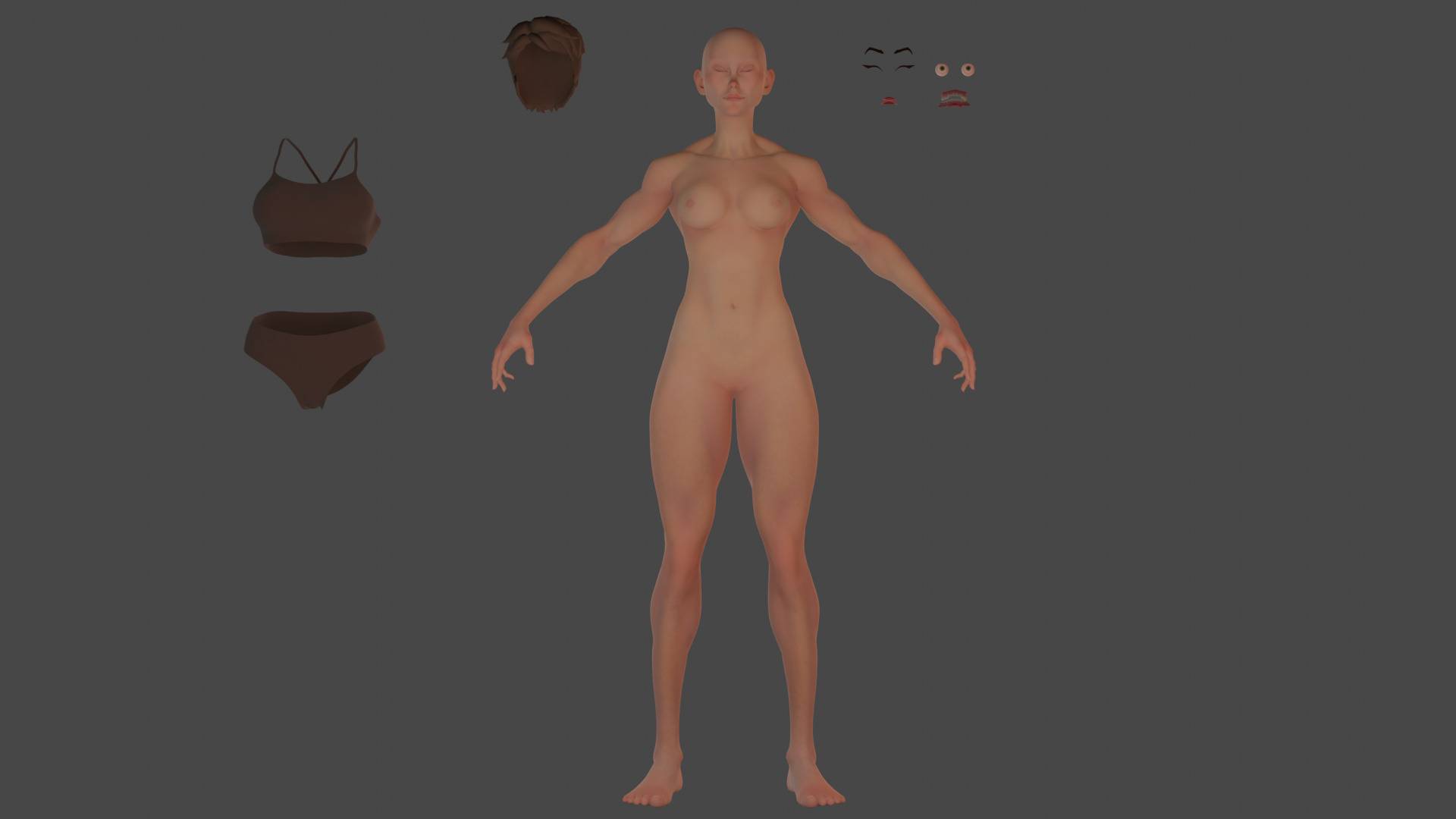 This character was created for multi-purpose use: anatomy study, rigging and animation, games, unique character design, can be dressed with different clothes. 3d model has mouth bag with teeth and tongue.