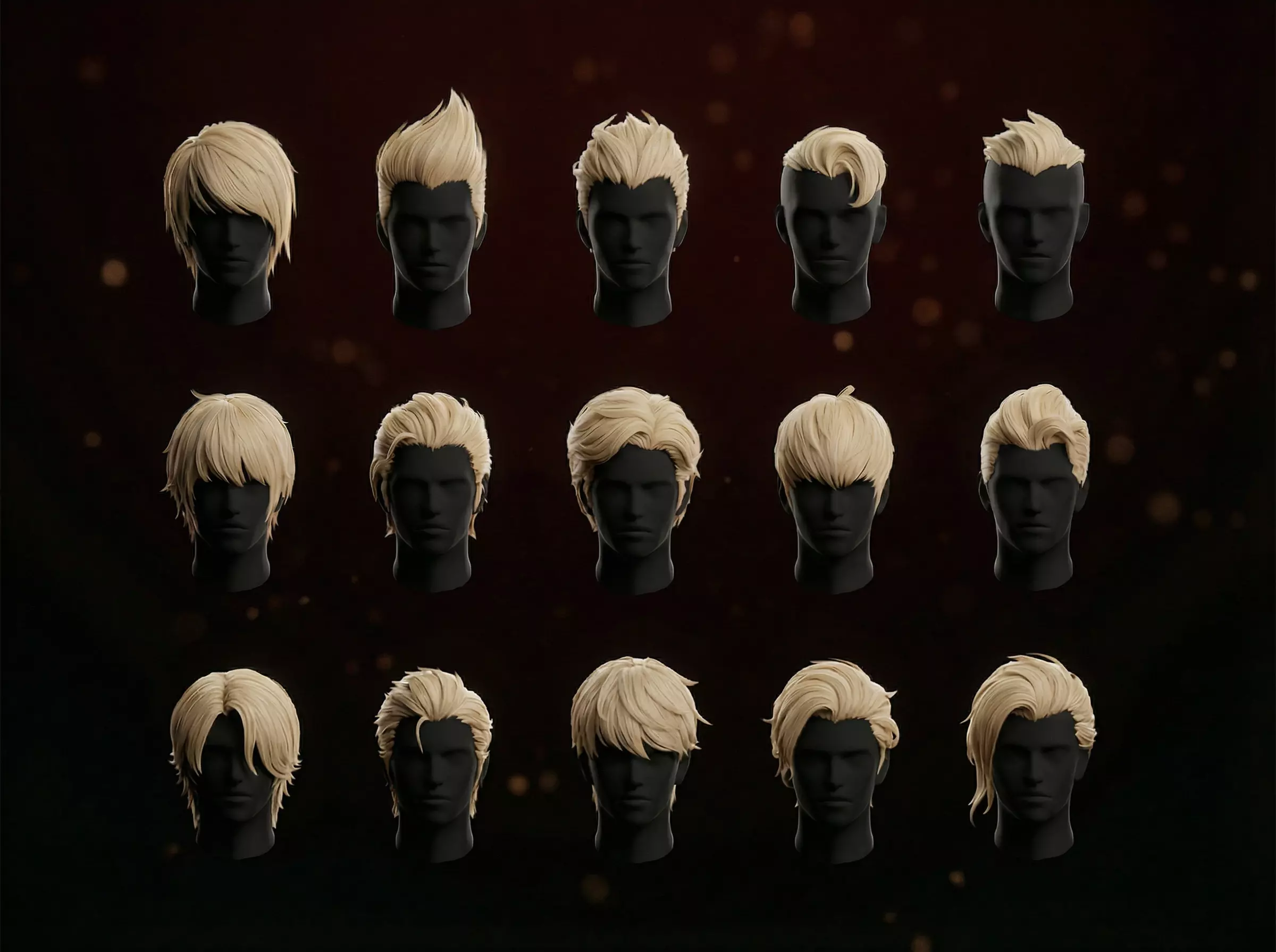 15 Male Anime Stylized Hair – Low-Poly 3D Model Pack